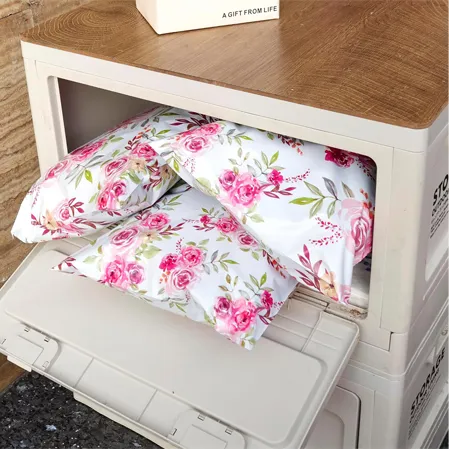 Classic rose bouquets in blush tones create timeless romantic packaging. These versatile mailers enhance lingerie, wedding accessories and luxury gifts. The feminine design appeals to customers seeking elegant brand presentation.